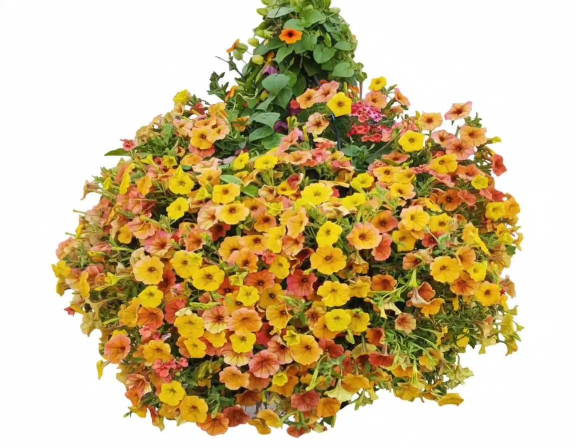 Een zeer bloemrijk mengsel in oranje en gele tinten.